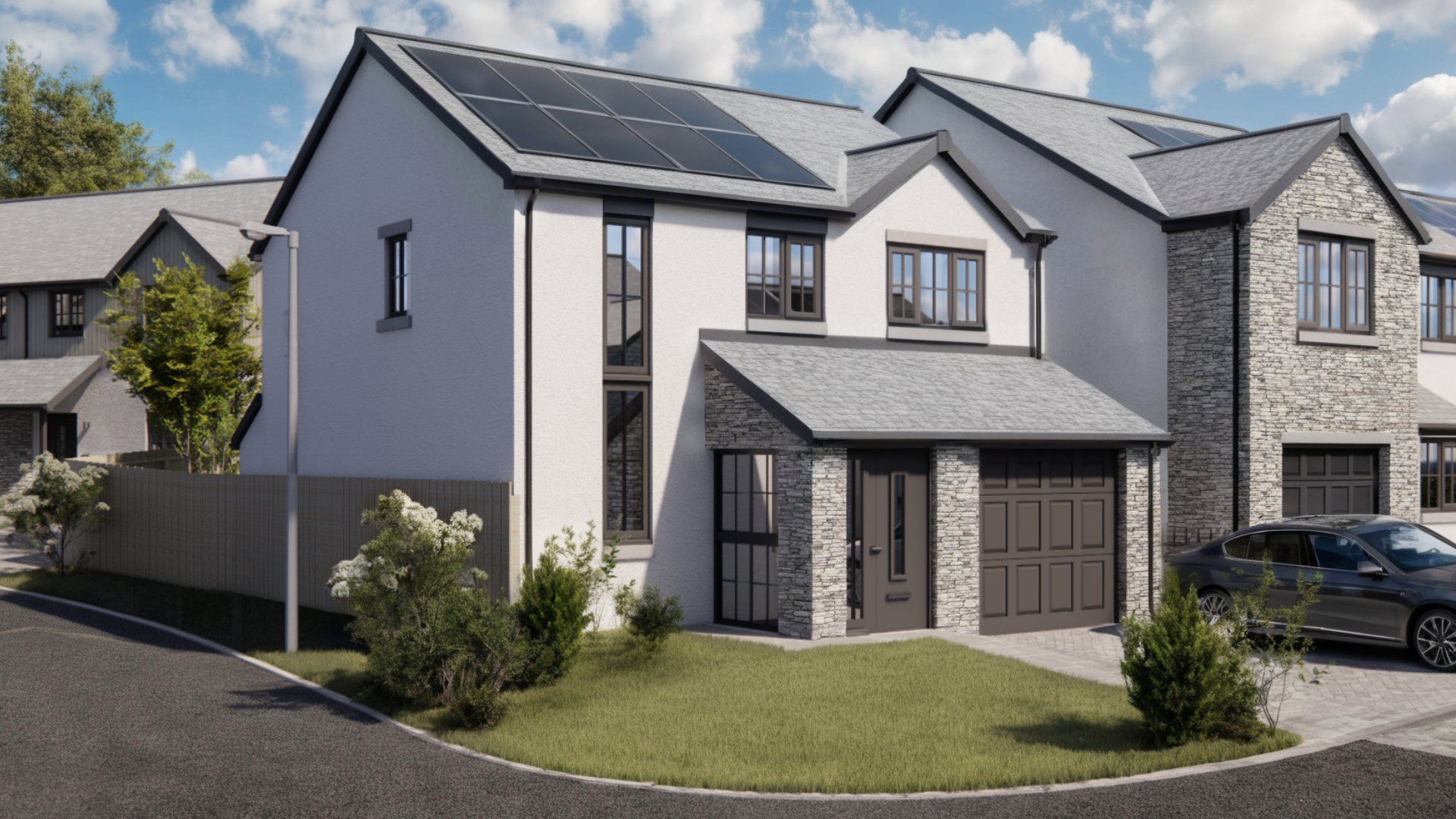 The Beech is a modern three-bedroom detached home, finished in a contemporary blend of render and Lakeland stone.