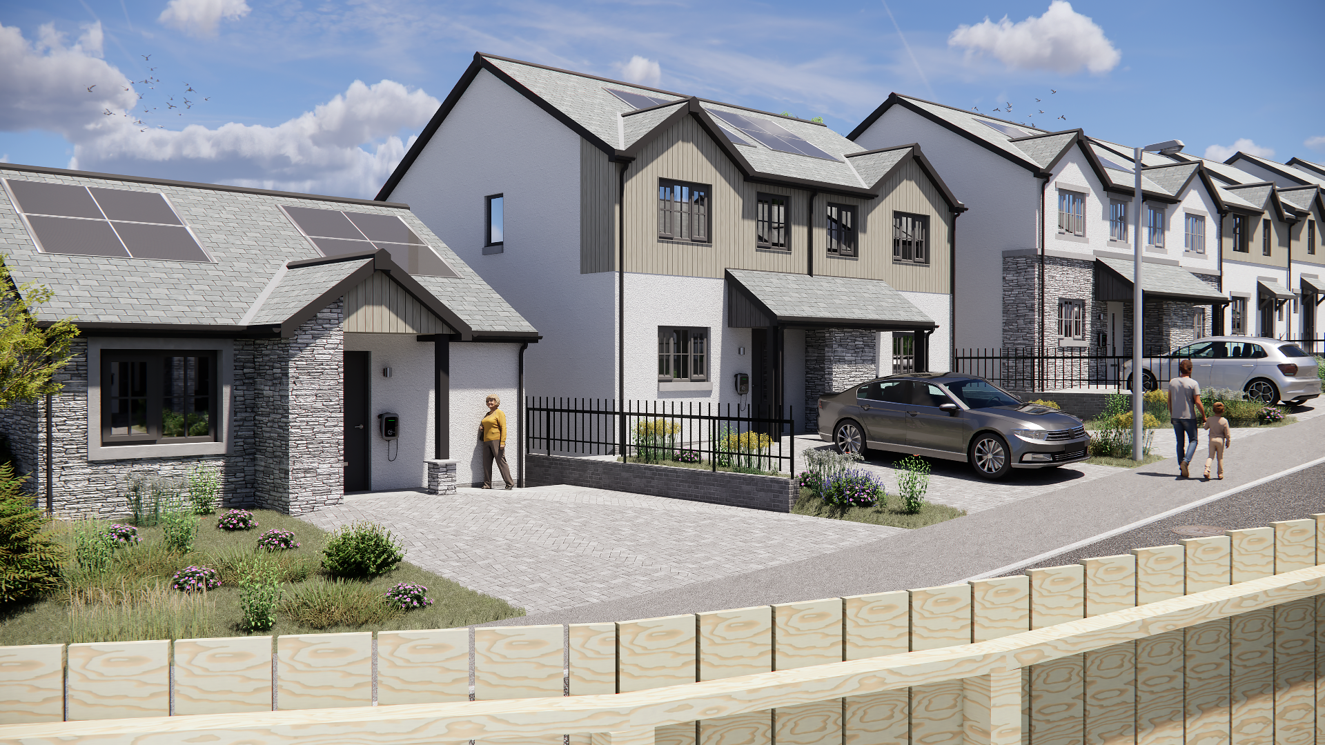 Double glazed uPVC doors open onto a private garden, extending the living space outdoors. Sustainability is built in, with solar PV panels, an air source heat pump, EV charging provision, and an enhanced building envelope ensuring a warm, efficient and future-ready home