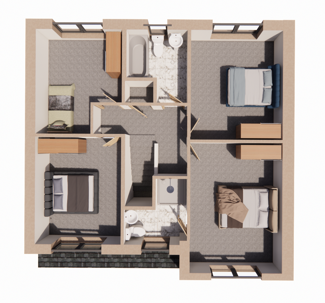 The Bexton is a 4 bedroom home, with 2 bathrooms, master ensuite and a downstairs WC. Boasting an open plan kitchen/diner and spacious lounge, it really is the perfect home for modern living. This home has a private driveway and integral garage, as well as a spacious garden to the side and rear of the property.