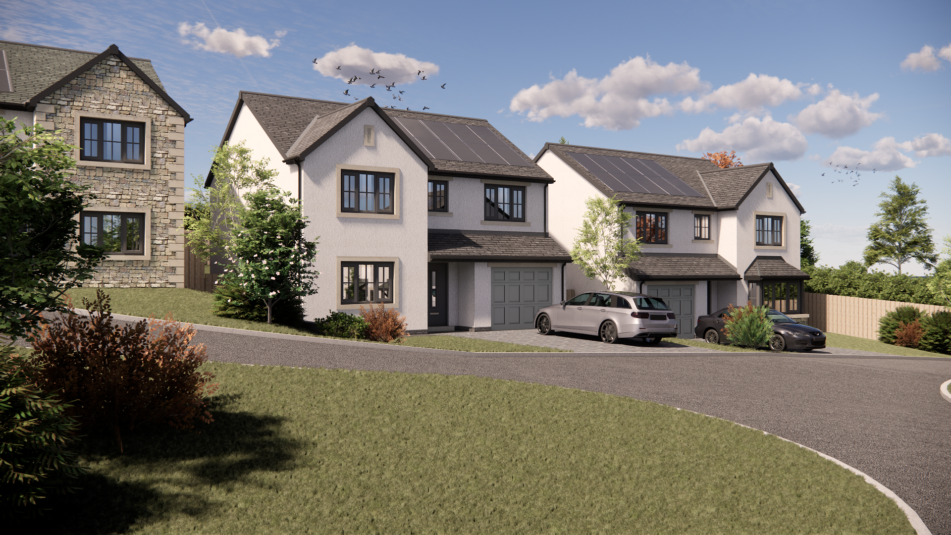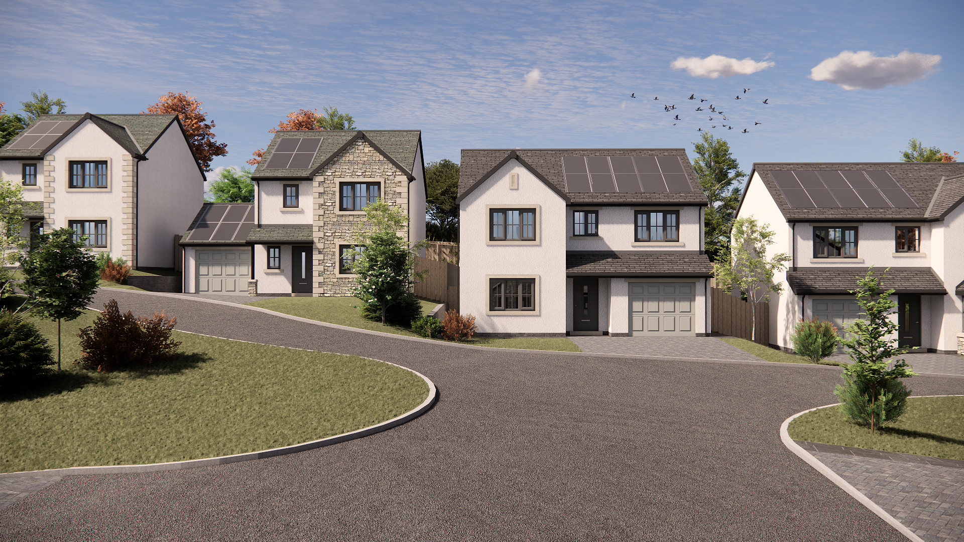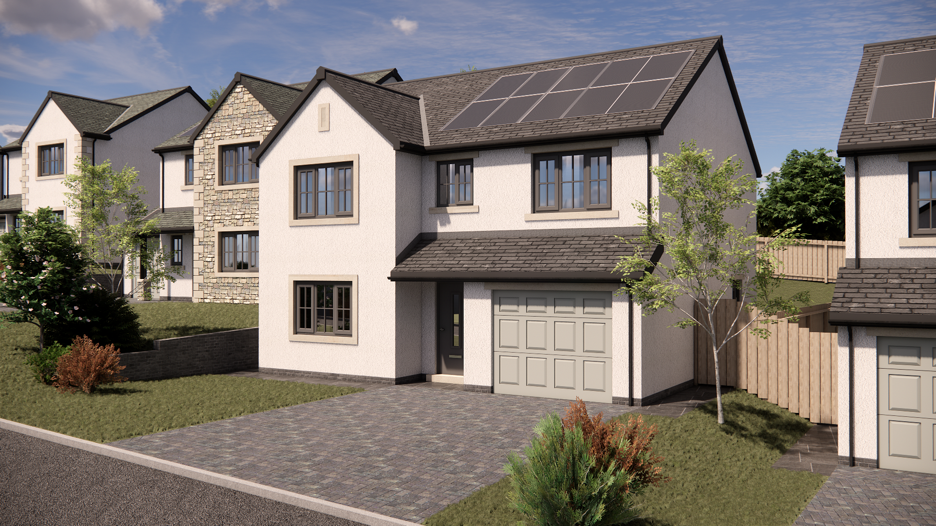 An integrated garage and a private rear garden complete the home, offering both functionality and outdoor space for relaxation. The home is complete with sleek Lambhill sandstone accents.